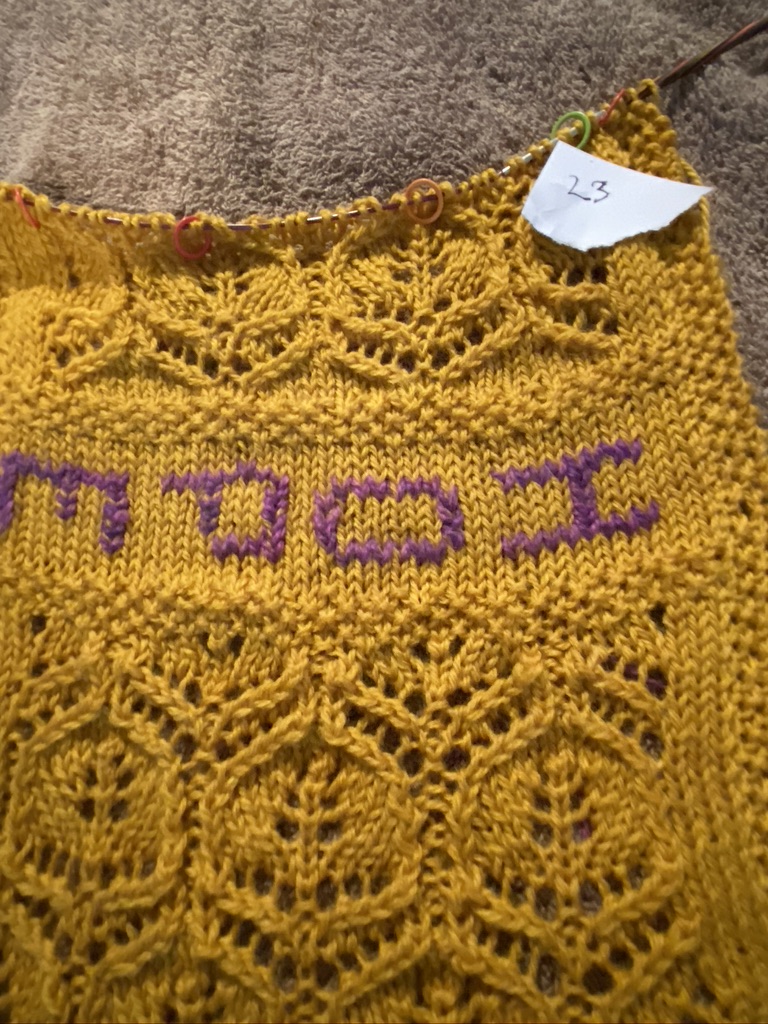 I’m beginning the third week and can say that I have not had an epiphany. I am cognizant of small changes that are occurring all around me – the song of a bird in the early morning where fog is heavy, the subtle change in the still bare trees as they get ready to bloom, the warmth of the sun when sitting with the sun on my back and knitting. I know that spring is around the corner and that many do not have the luxury of knitting in the sun or hearing the first spring bird sing. For these blessings I am thankful.