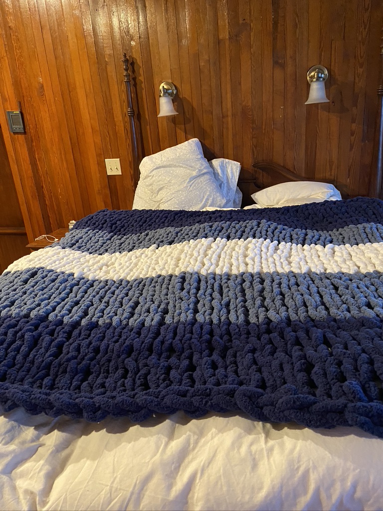 When she opened the garbage bag and saw the blanket she was filled with delight! She reminded me that she had gone with me to pick out the yarn. I had totally forgotten!