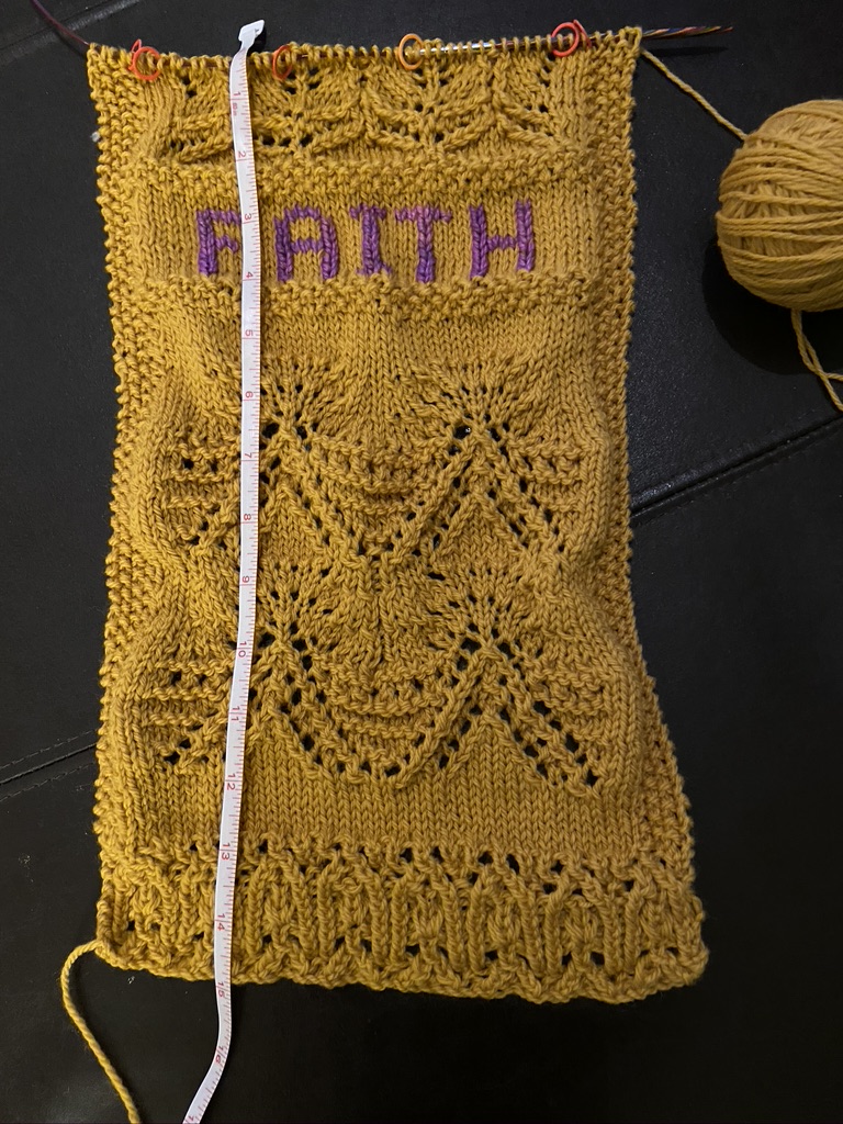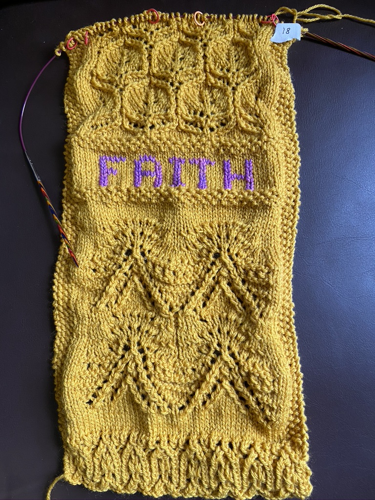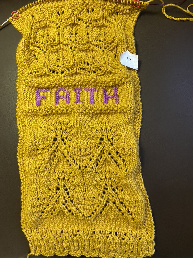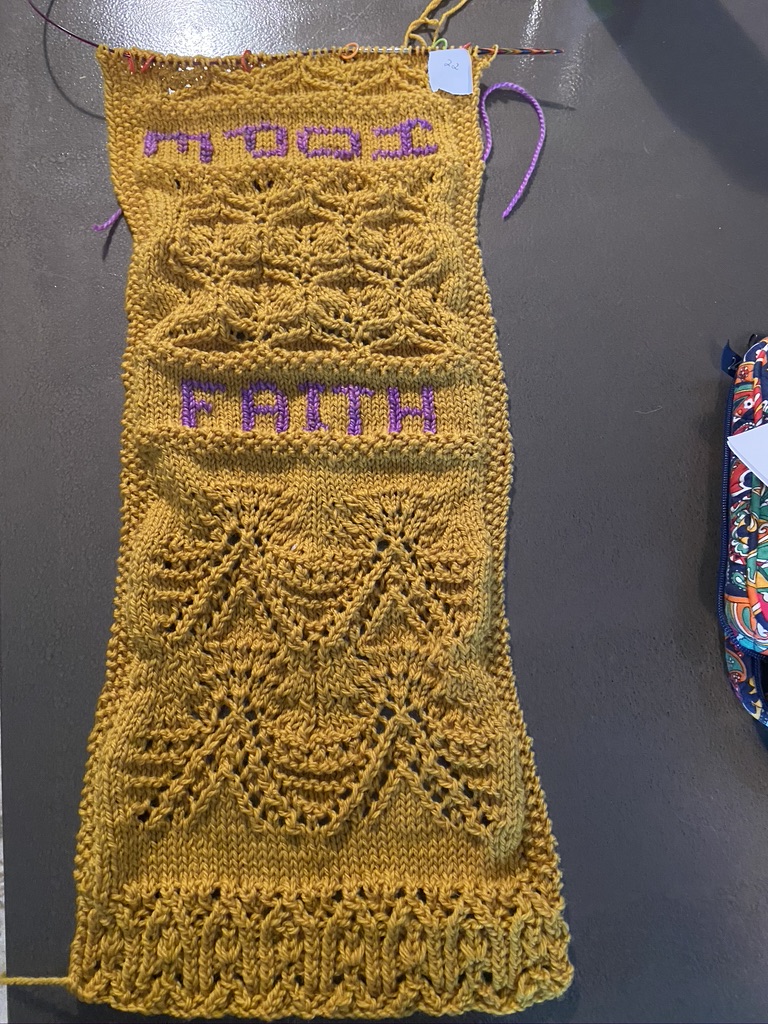 Project Update – 8 rows of Stockinette and the word Hope using duplicate stitch